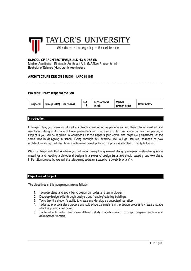 Project Brief 3 Architecture Studio 1 March 14