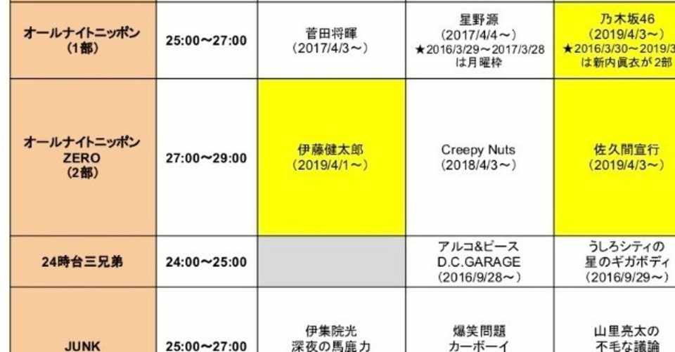 深夜ラジオ番組表 19年春の改編 ずぼらいたー ゆいき Note